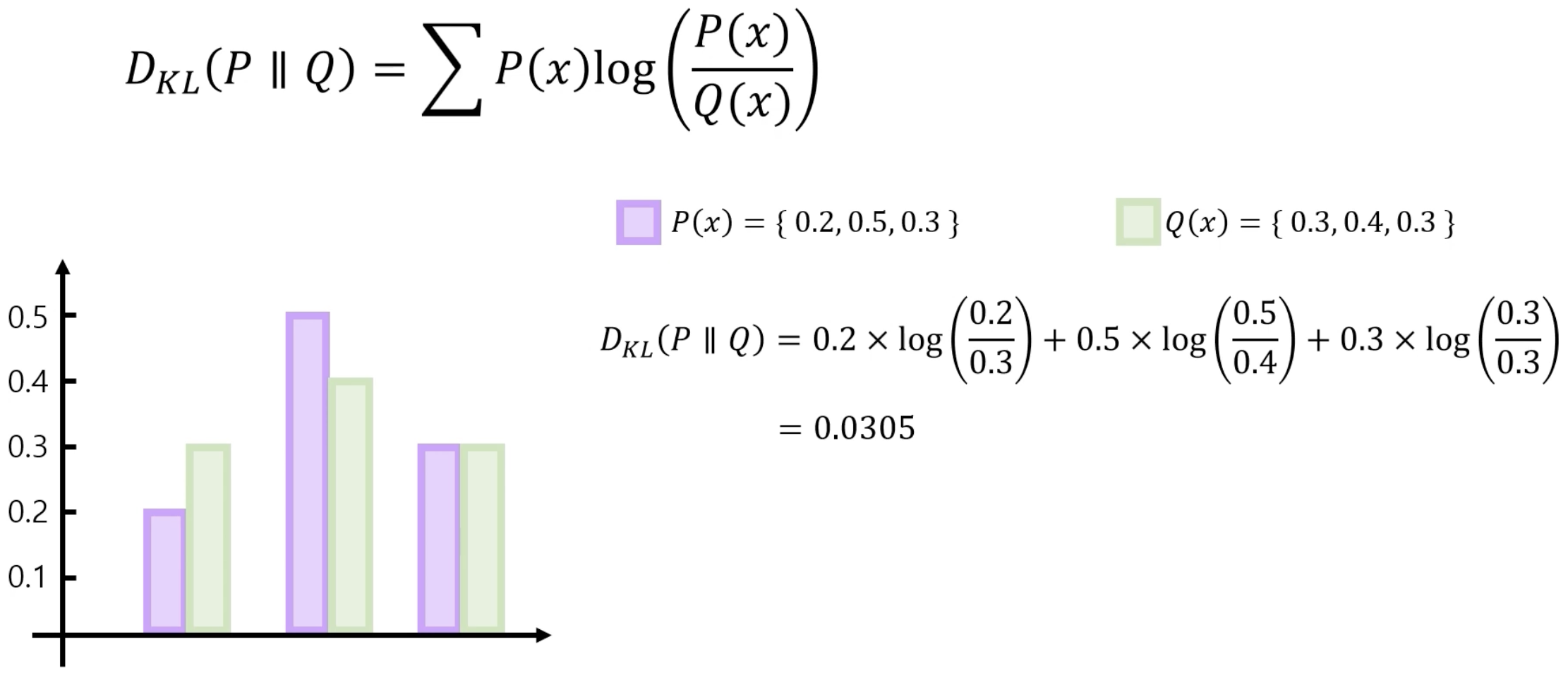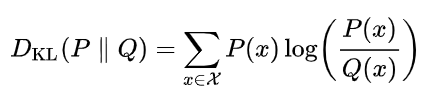 KL Divergence는 두 확률분포 간의 정보량의 차이를 측정하는 데 사용되는 개념이다. 수식은 다음과 같다.