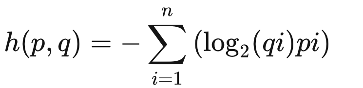 모델에서 각 클래스에 대해 예측한 확률값을 q, 실제 값의 확률을 p, 클래수 개수를 n이라고 하면 공식은 다음과 같다.
