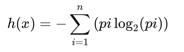어떤 특정 현상이 발생할 확률을 p라고 할 때, Entropy의 공식은 다음과 같다.