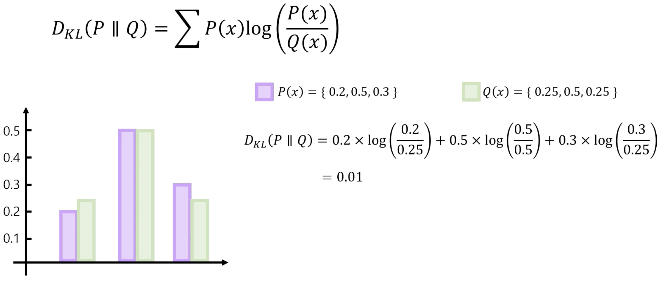 2. KL Divergence : 두 확률분포 간의 정보량의 차이를 측정하는 데 사용되는 개념 (Cross Entropy - Entropy)