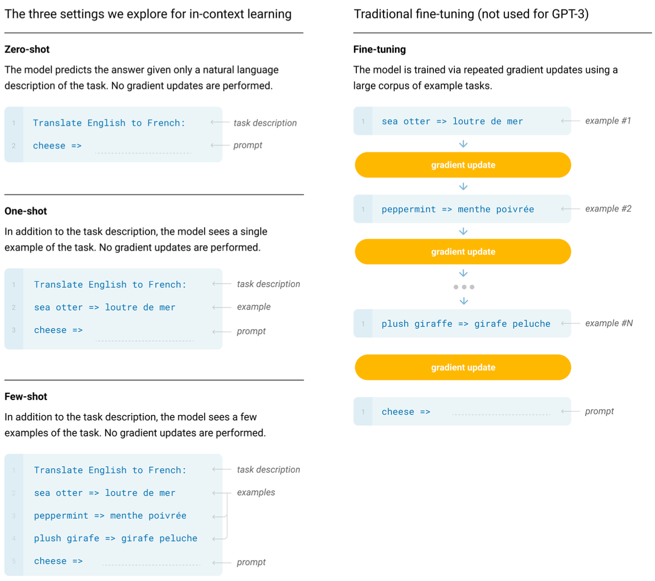 - 모델이 몇가지 예시만을 통해 새로운 task에 효과적으로 적응할 수 있는 능력