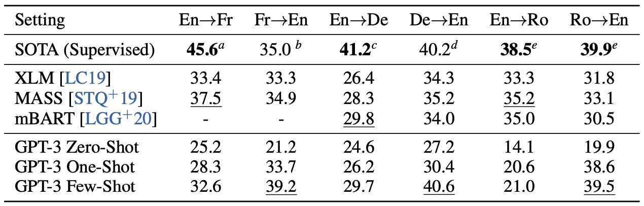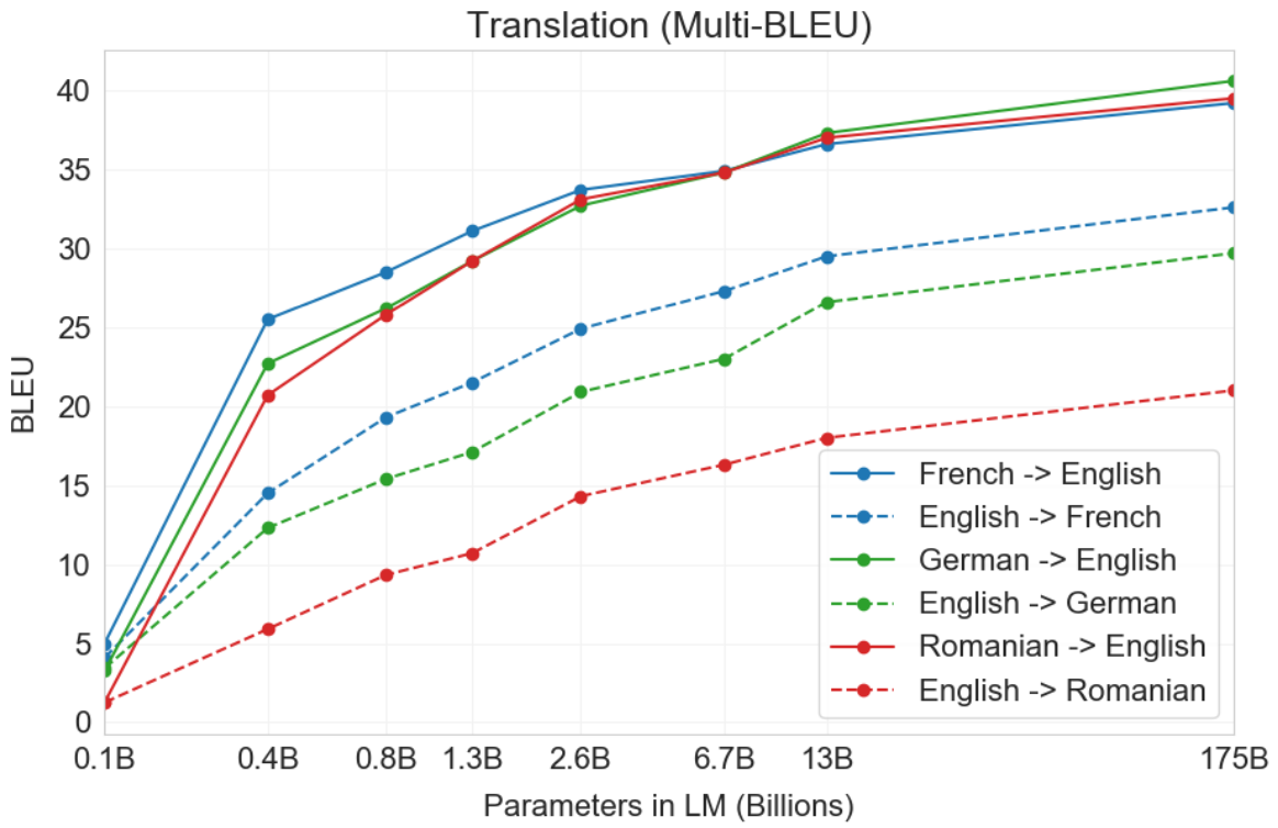 - 33.5 BLEU 달성한 연구에 비해 500배 작은 데이터인 10MB 크기의 프랑스어를 가진 WebText로 학습을 했는데도 불구하고 이정도 성능