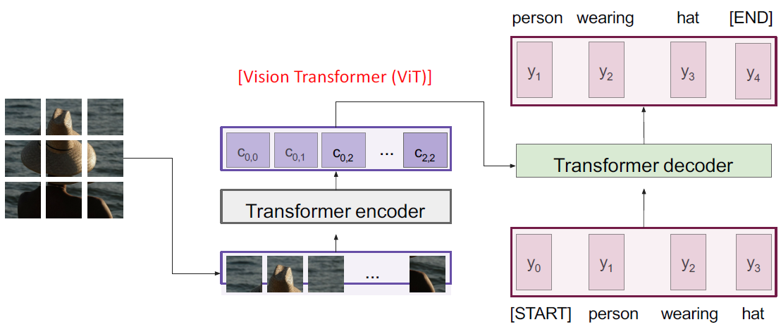 CNN을 없애고 Transformer만 이용하여 image captioning을 할 수 있다.